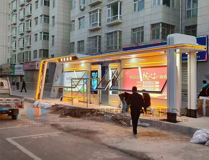 城市候車亭發(fā)貨安裝現(xiàn)場(chǎng)